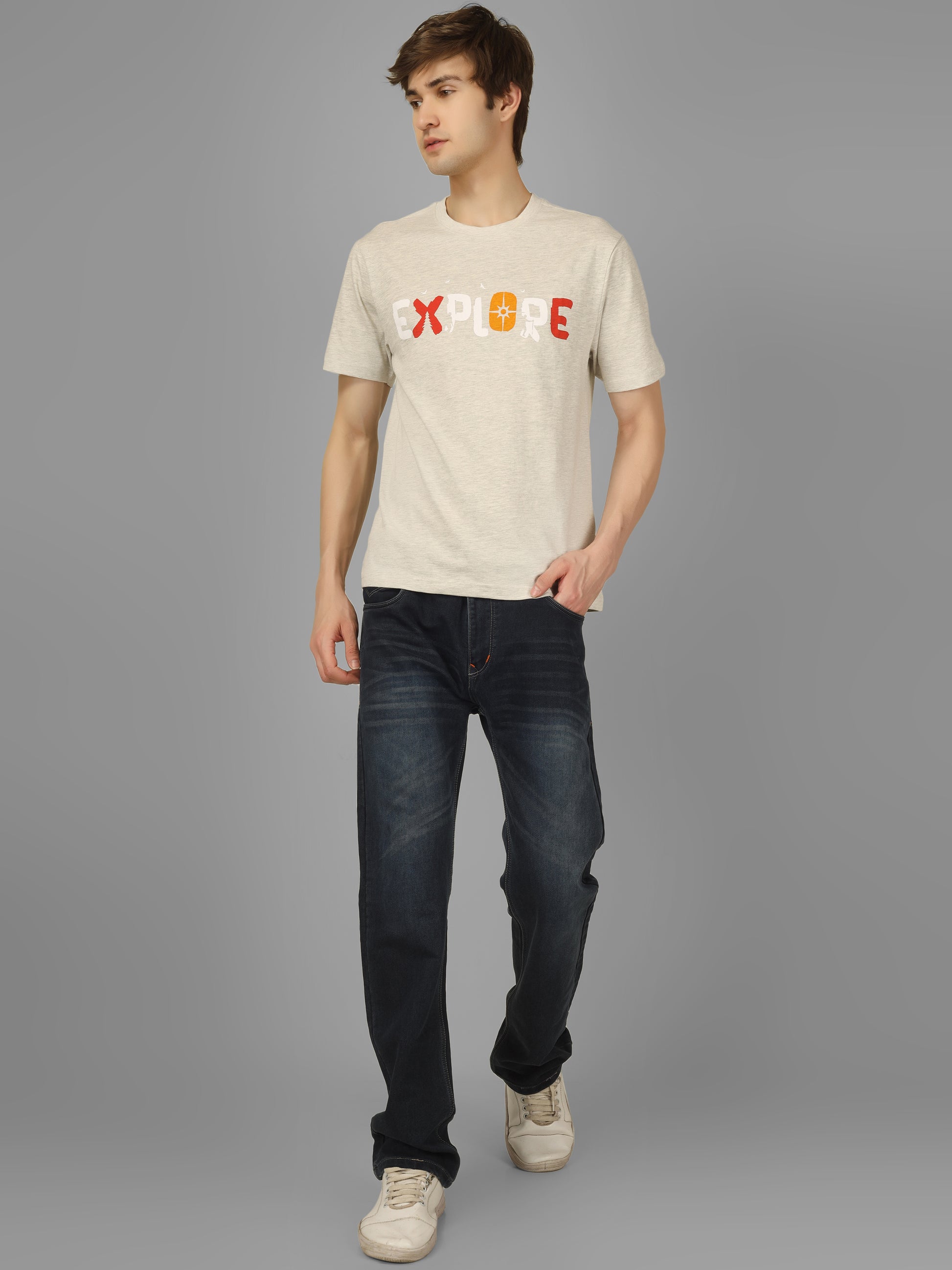 Made from 100% super combed cotton, this round neck T-shirt delivers a soft, breathable feel with a sturdy 160 GSM weight for lasting wear. The bio-washed finish adds a smooth texture and refined look, making it a versatile staple for everyday style.